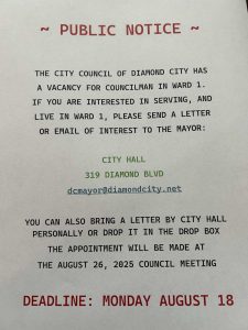 The Diamond City, city council meeting was held on April 26th 2023 at 6:00 pm. Below is a recap of what went on in that meeting.